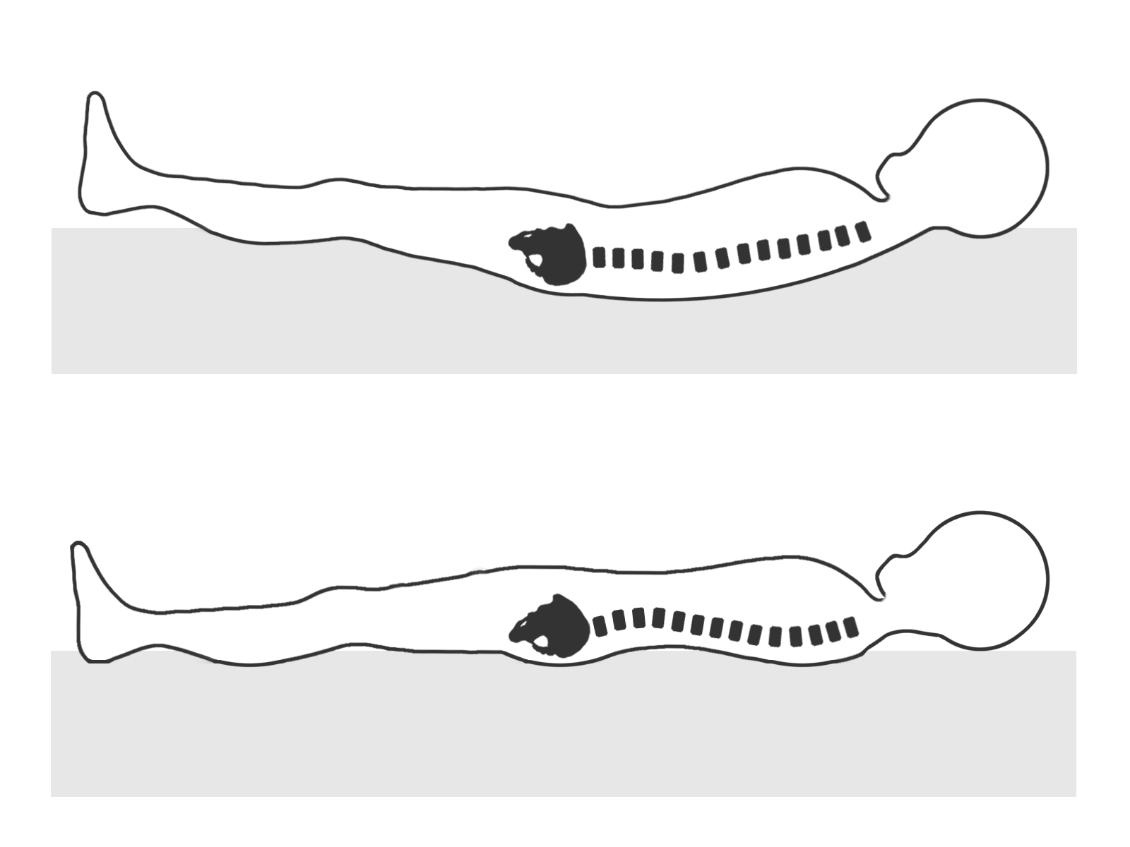 そのため、理想的な寝姿勢である背骨のS字カーブを描くことができません。