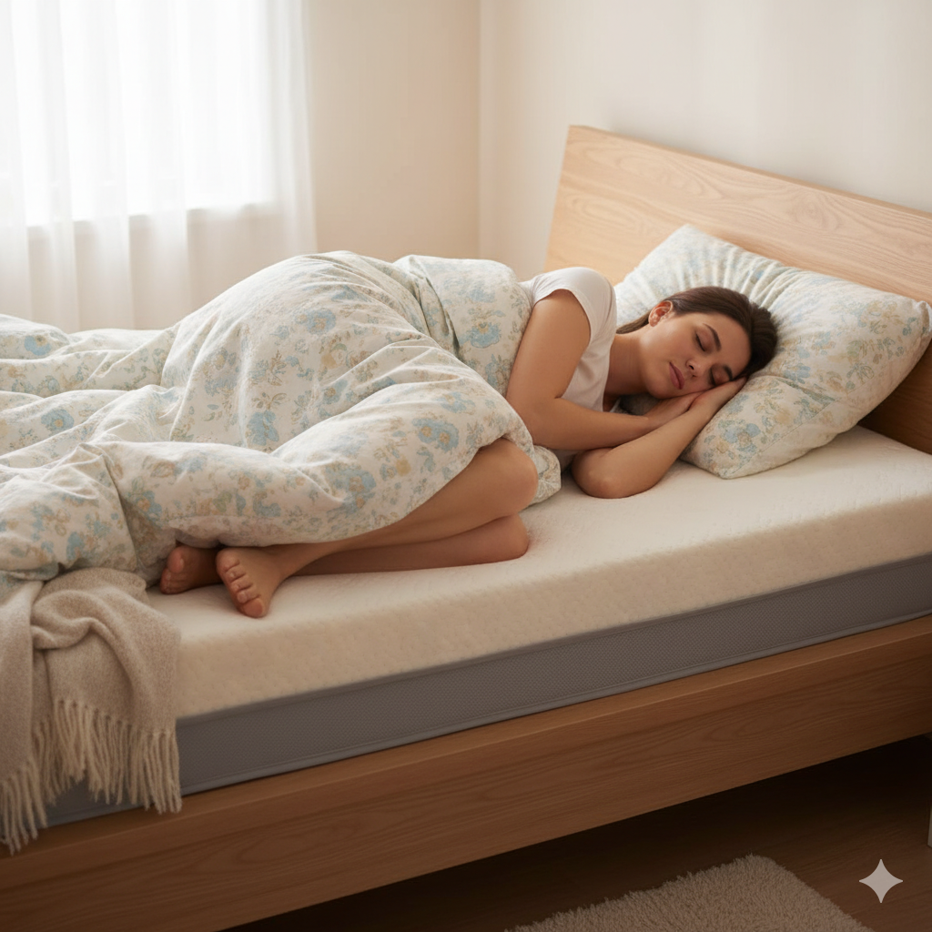 特定部位への圧迫感を和らげる体圧分散性の高さも、横向きで寝た際の肩やお尻への負担を軽減するのも低反発マットレスの最大の利点です。